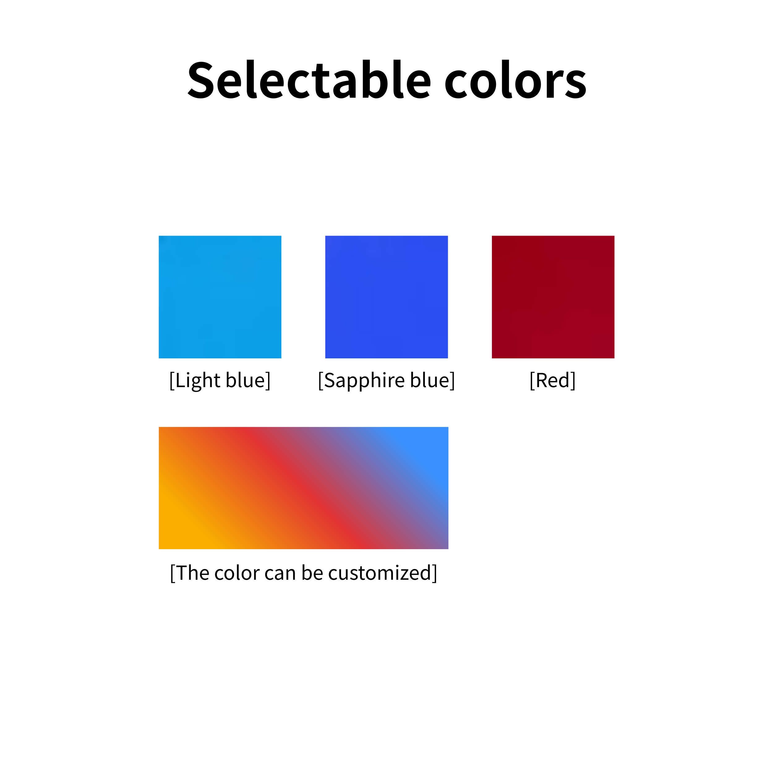 Optional colors Light blue, Royal blue, red, Custom colors (Customizable starting from 10 units)